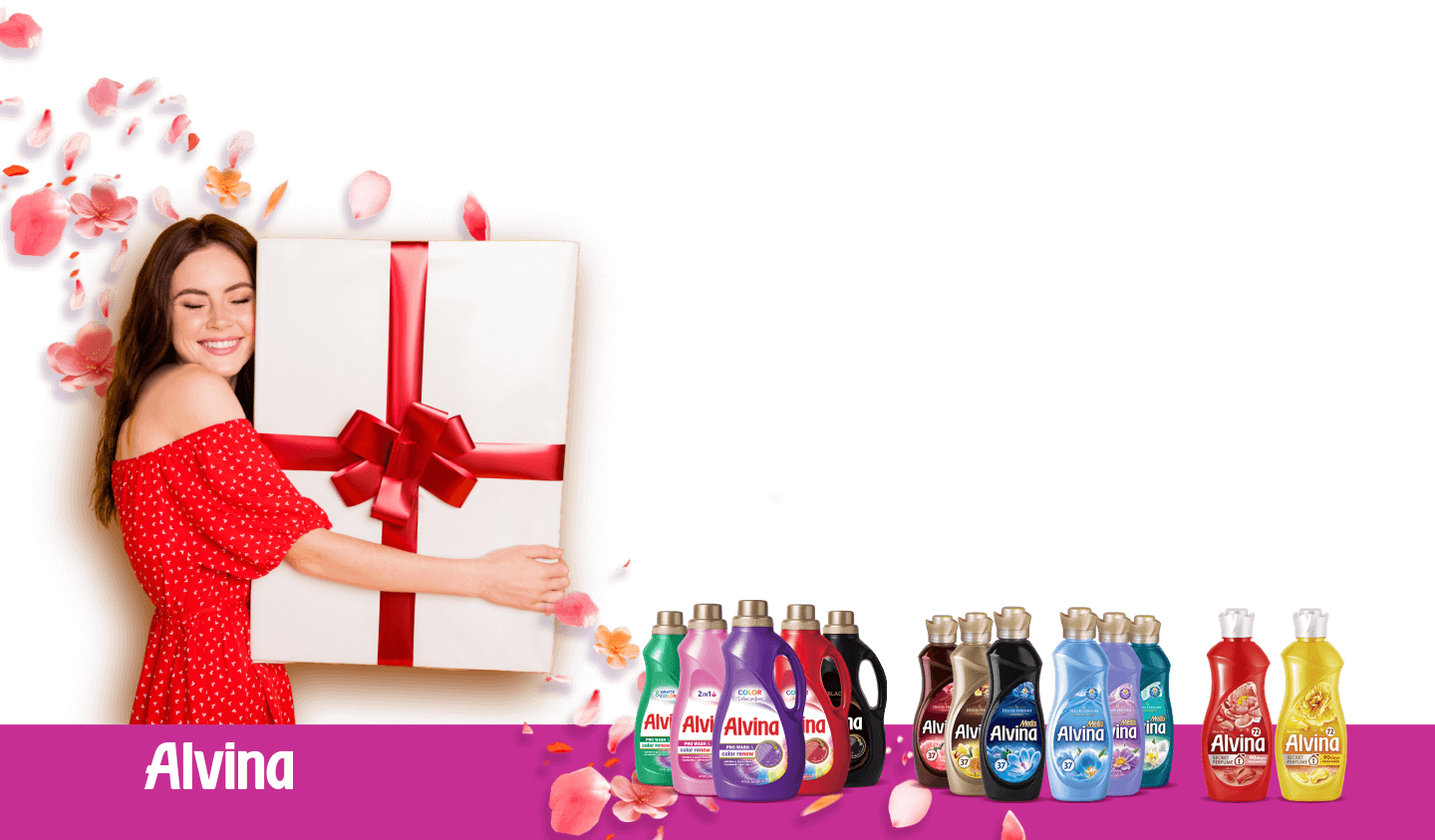 „Купи продукти с марка „Alvina“ на минимална стойност 6,49 лв. или 13 лв., регистрирай касовия бон и играй за награди.“